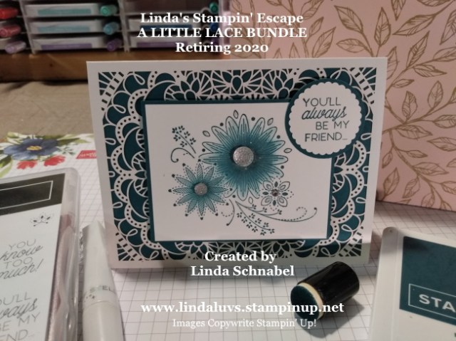 Here is the list of basic ingredients used to create these cards. Please note that the “Stitched Lace Dies” are ON SALE for ONLY $14.00. You may click on any item for more information and/or begin your shopping. Thank you