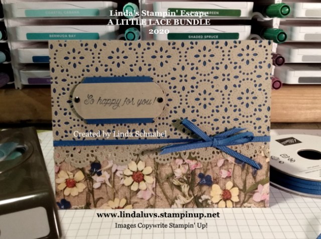 I am excited to share a few cards with you today. It’s from the A Little Lace bundle and it just shouts “HELLO SPRING!!” This is another of my favorites that is on the retiring list. I love the whimsical floral pattern in the stamp set and the detailed die that coordinates …