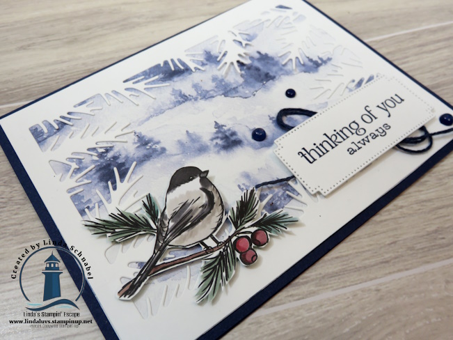 While the Nests of Winter Designer Paper features gorgeous images of birds with coordinating dies, I decided to “fussy cut” the bird used on today’s card. There’s something soothing about the process of cutting out these delicate images by hand—it’s a creative ritual that many of us enjoy. Fussy cutting allows for precise placement, adding a personal touch that makes each card feel truly special.
