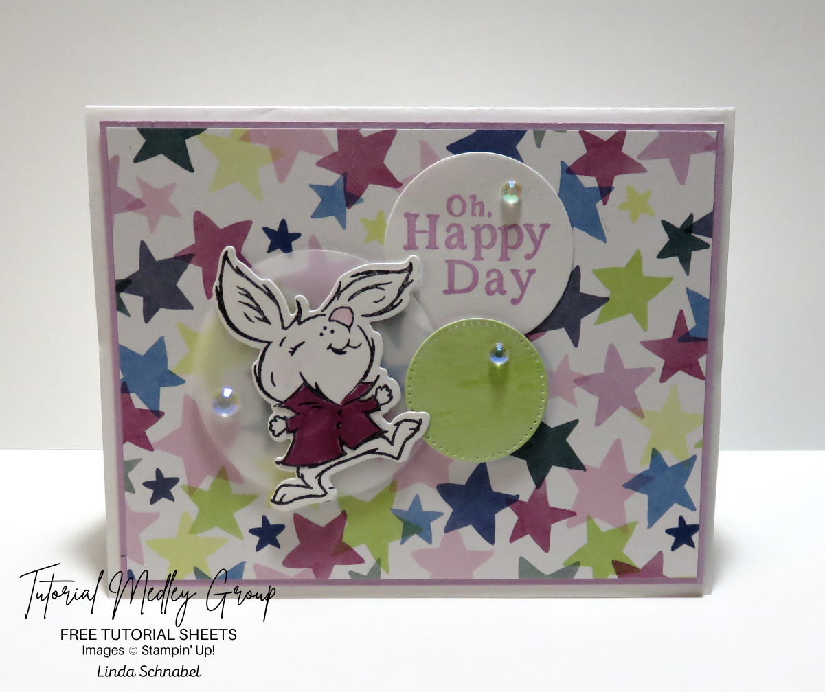 This next card is just one of the cards that I designed for my Designer Series paper Class! I have always wanted to create a card like this (don’t know why it took me so long) because it’s simple yet it is so pretty! It showcases 3 more patterns in the Twinkle Twinkle paper … see the “stars”!! Here we used the new Detailed Trio punch with the corner rounder side. More details can be found HERE on the original post.