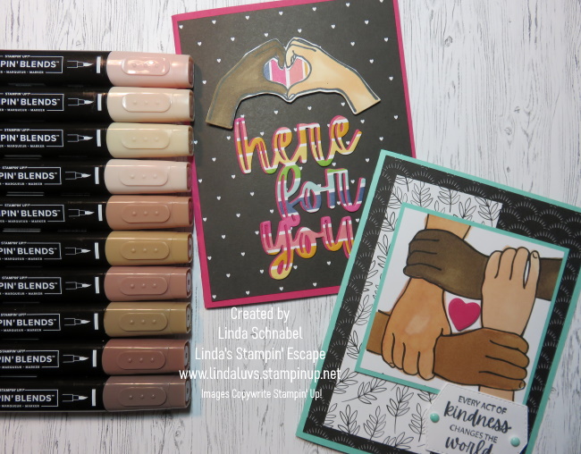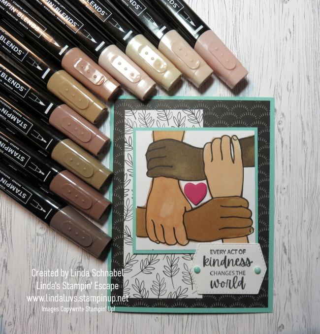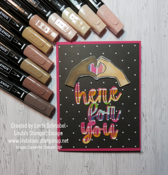 Both of today’s cards were “jazzed” up with my Stampin’ Blends! My first card is a fun Autumn card and I used the Pumpkin Pie Stampin’ Blends to add a strip of color between the stripes on the designer paper ….