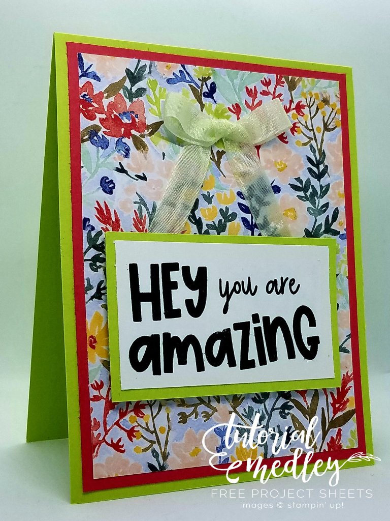 Finally feeling a little better so I’ll be back to posting and sharing again! Today’s Hey, You are Amazing card features the Amazing Phrasing stamp set and the Rings of Love Designer Paper.