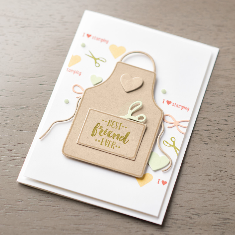Warmer weather is on it’s way and I’ve got some cute cards that you will be able to create lovely aprons for every occasion you can think of with the Aprons of Love Stamps and coordinating dies. Aprons symbolize so many things: love, dedication, and caring for others. The recipients of your projects will feel thoroughly appreciated.