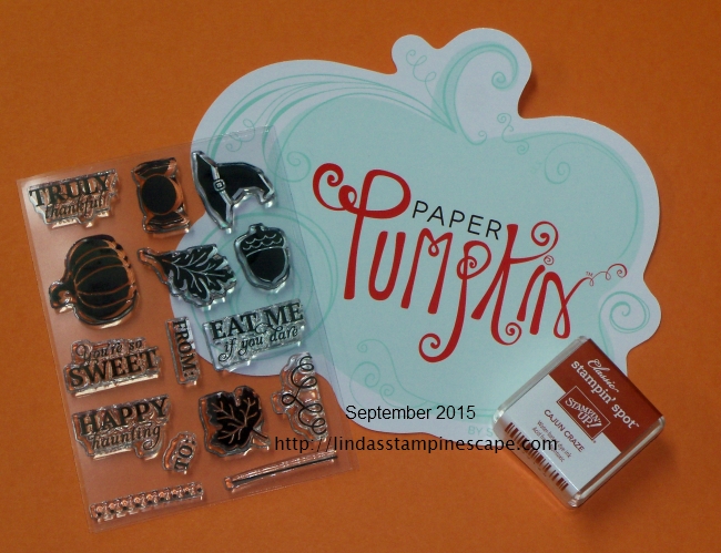 Today I promised an alternative idea for your Paper Pumpkin kit. Just a little reminder of the stamp set that comes with the kit …