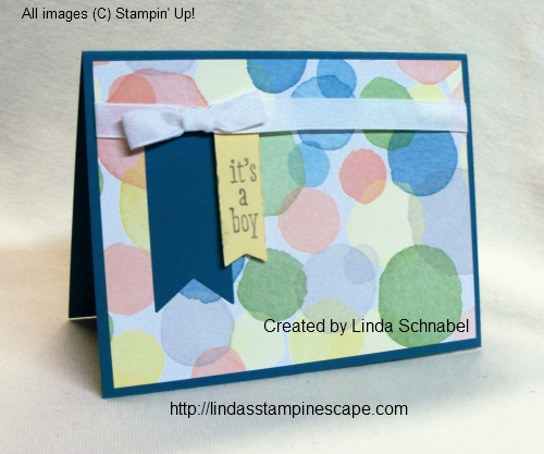 This one is done in Pink Pirouette and Basic Gray and showcases the “Zig Zag” folder. The greeting comes from the “Celebrate Baby” stamp set. I love the combination of stamps that allow you to make many different types of baby cards.