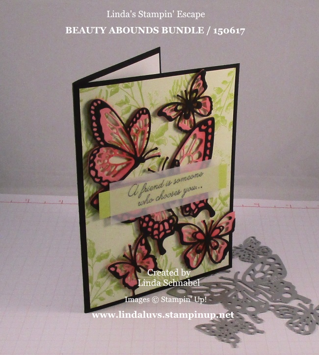 Today I would like to share with you a card using the retiring Beauty Abounds stamp set. When I saw it … I had to have it. My Mom loved butterflies so every time I see one … I think of her. This way she is always around me.