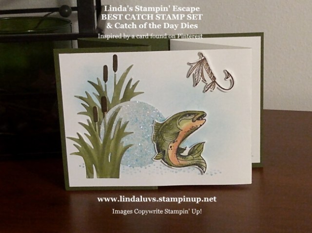 Sorry I missed you yesterday (Technical problems) however I have two for you today! We are all looking for masculine cards and I have two today that should fit the bill … Best Catch. I must say though, girls love to fish too!! That is a wonderful memory I have of my Grandpa, my Dad … and my Mom.