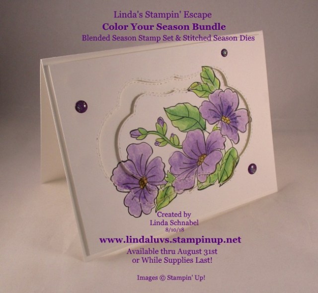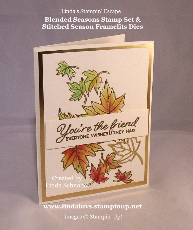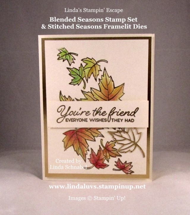 Today I’m going to share one more card from the Color Your Season Bundle: The Blended Seasons Stamp set and the Stitched Seasons Dies and then we’ll take a look at all of the different and beautiful cards you can make with this one bundle … and this bundle goes away today. True, today is the last day to order this amazing stamp set and die.