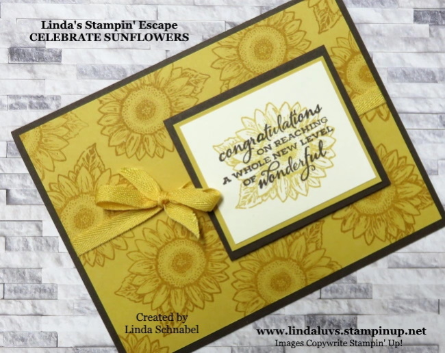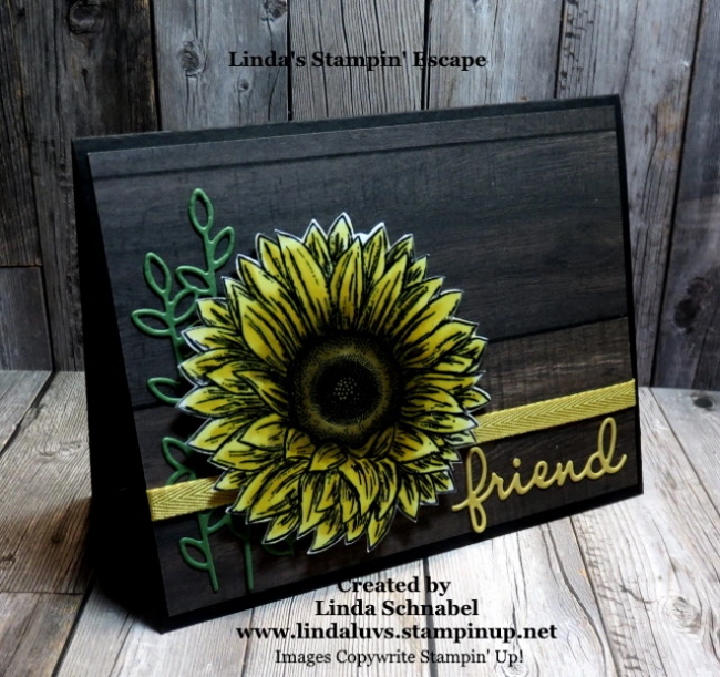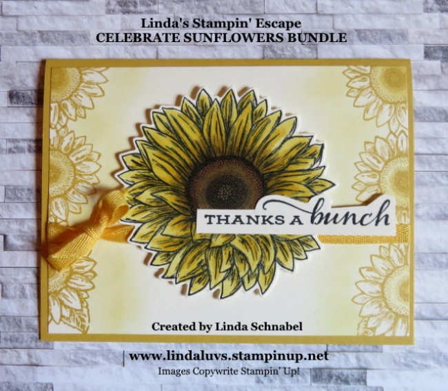 Yikes … sorry for the late post but I promised I would share another Celebrate Sunflowers with you, and I got a cutie for you today! Using some of the same techniques as yesterday and then “WOW” … I used the large sunflower colored with the Stampin’ Blends.