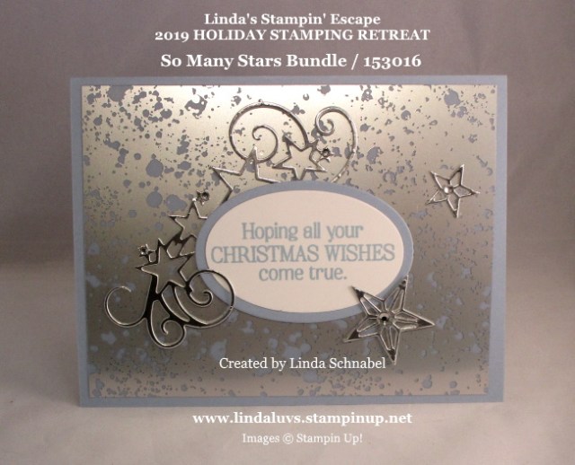 Today I have a beautifully unique card that I designed for my Holiday Stamping Retreat. It features the new Mercury Glass Designer Acetate which has a faux mercury glass finish on acetate sheets. This unique acetate highlights our So Many Stars Bundle.