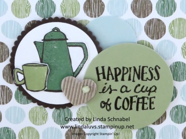 We used the Coffee Break Designer Series paper for our background and to create our focal point – which is the coffee pot & cup highlighted with the use of the Circle Framelits Dies.