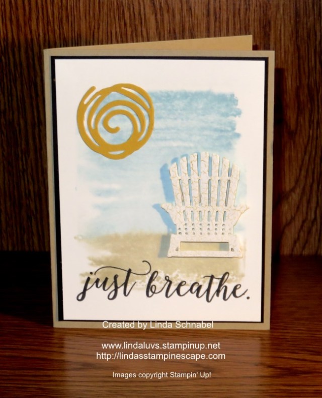 Our greeting comes from the Colorful Seasons stamp set. This bundles with the Adirondack Chair from the Seasonal Layers Thinlits, and I recommend purchasing the Colorful Seasons bundle … save 10% plus get your $5.00 coupon from Stampin’ Up! and a virtual rewards point from me!
