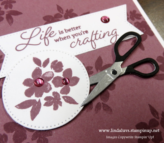 A Glue Dot was used to hold the two pieces of the scissors together and then I popped the little black circle into the circle area of the scissors. Easy peasy!