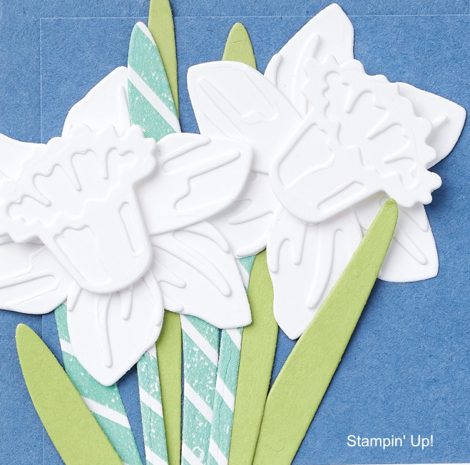 - Adhere assembled daffodil and stem onto vellum. See photo of card for placement.