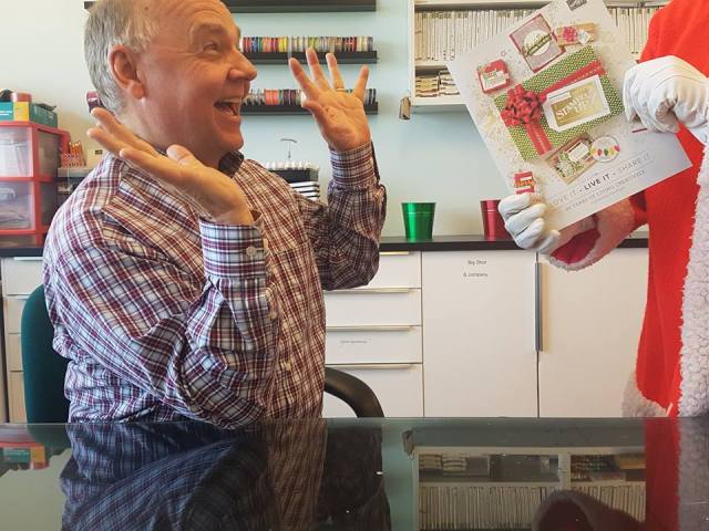 YES … the dies that created the stunning background on this card come in the Dashing Deer Bundle. This baby is on it’s way to my house right now!! I’m so excited with all the amazing stamp sets, bundles, card kits and accessories … Why don’t YOU be the first to host a holiday party in September and get the Dashing Along Designer paper and MORE FREE!!