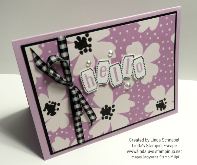 I took the weekend off but I’m back to say HELLO in a fun & whimsical way. I am using the Delightfully Eclectic 12 x 12 Designer Series paper. This paper is so much fun with a total of 48 sheets … you’ll get 4 sheets each of 12 double-sided designs. That is 24 “delightfully eclectic” patterns. I’ve used several already and I’m sharing one of them with you today.