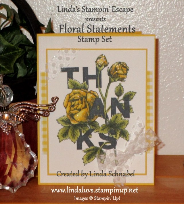 Well, well, well … how did you like to two “Hello” cards? Two different styles but pretty easy to recreate. Today I have another card from the Floral Statements for you featuring the “Thanks” greeting.