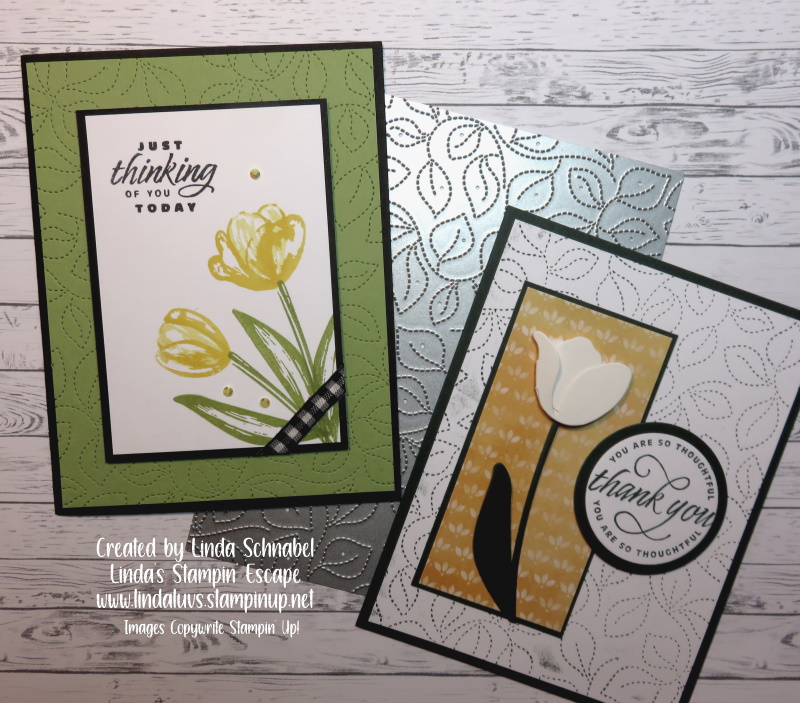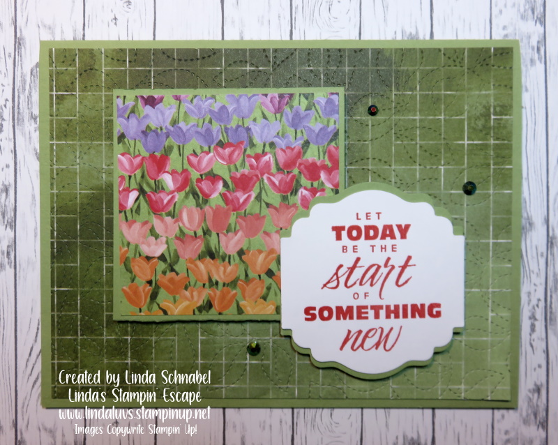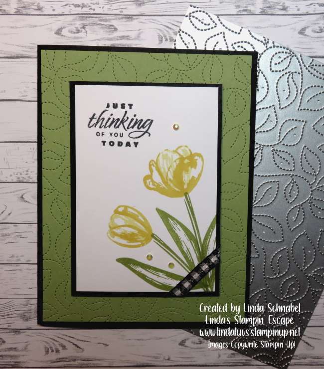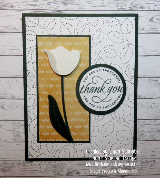I snuck the greeting out of the Flowering Tulips stamp set … I love this stamp, it’s one of my favorite greetings and I use it a lot. I used the Tuxedo Black Momento Ink pad on the greeting and my flowers.