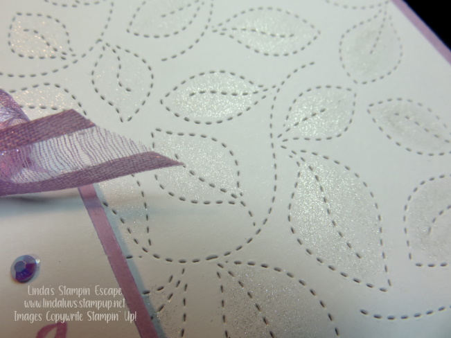 The greeting was attached to the piece with the flower and then the entire piece was popped up with Stampin’ Dimensionals. It’s a pretty card that is easy to replicate … so have fun with it!