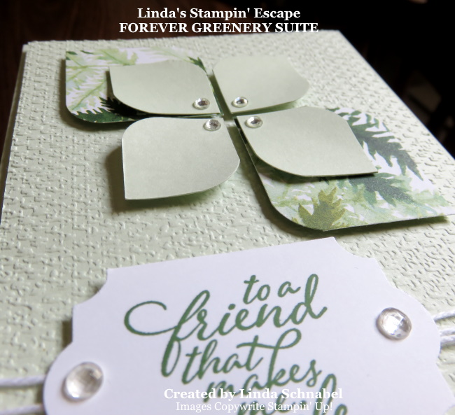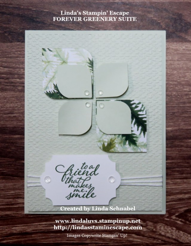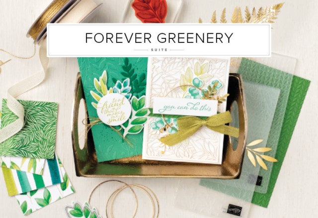 I am using the Forever Greenery product suite that you can find on pages 108 – 110 in our Annual Catalog, so you’ll see the stamp set, dies, designer paper and the awesome Gold Hoop Embellishments.