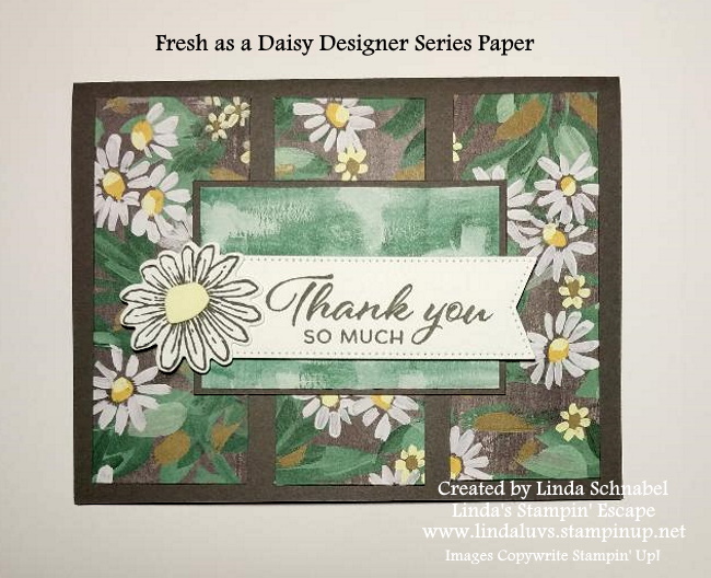 I hope you enjoyed and felt inspired by the beautiful “Fresh As A Daisy” Designer Paper … and this is only from one sheet! Thank you for taking time out of your Sunday to visit my blog.