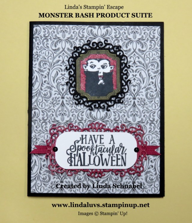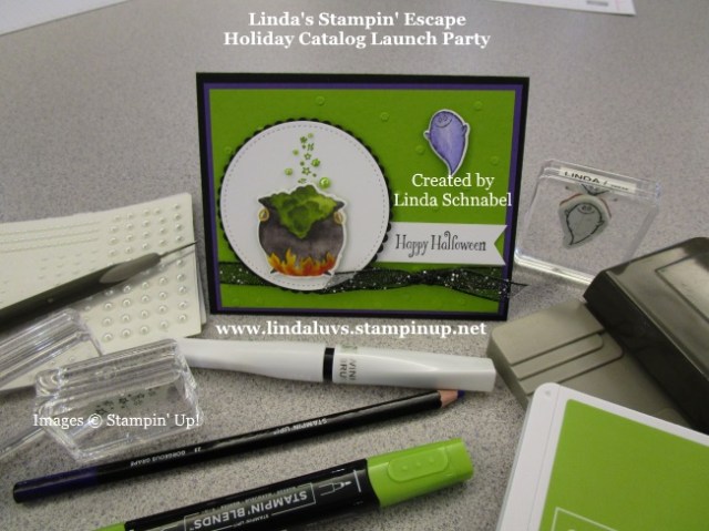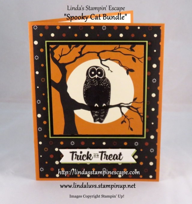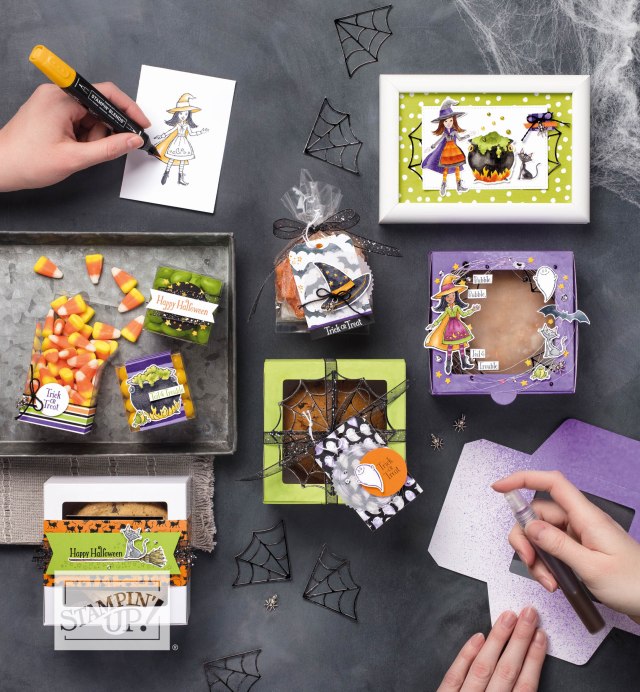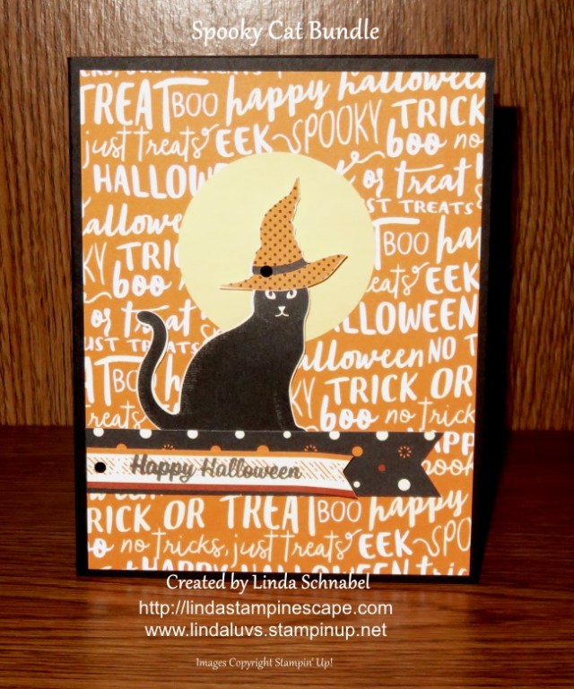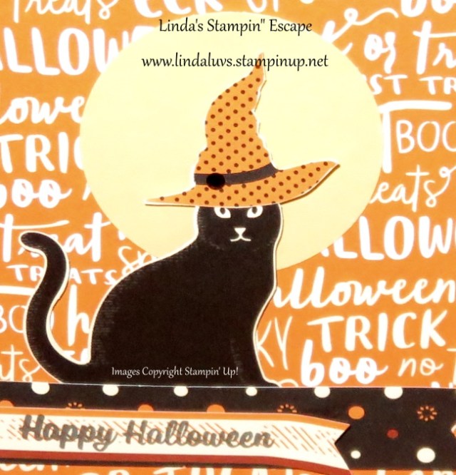 The “Happy Halloween” comes from the Hallows Night Magic stamp set and was stamped on Granny Apple Green using my Stamparatus to double stamp it so it appears darker …