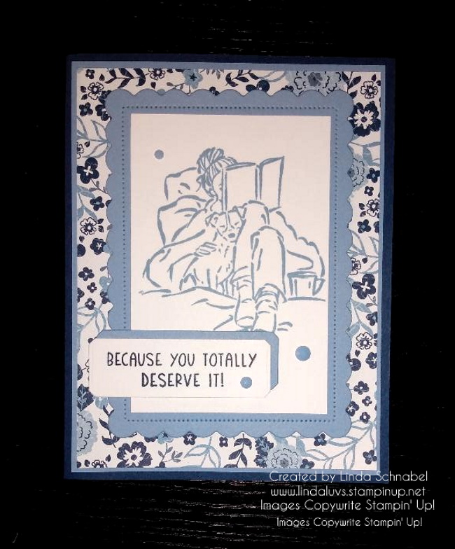At the heart of the “In the Moment” stamp set lies a charming depiction of a woman and her faithful companion, a dog by her side as she reads a book. This captures the simple joy of companionship and relaxation. Whether you’re a dog lover yourself or know someone who is, this stamp is sure to tug at the heartstrings and evoke feelings of warmth and that moment one needs for themselves …. Because you deserve it!