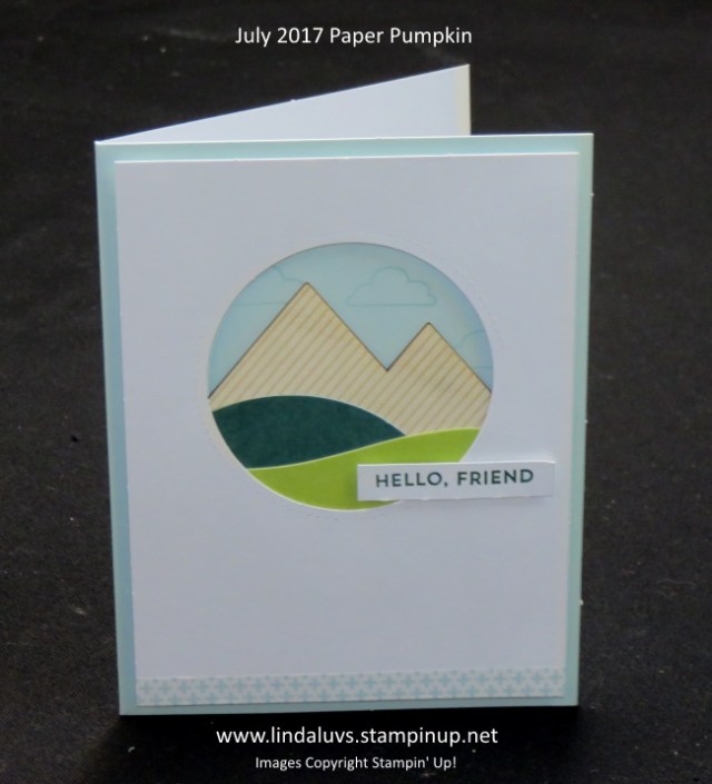 Hope you enjoyed yesterday’s cards … I’m back today with the second round of the July 2017 Paper Pumpkin kit. You will see the remaining 2 cards from the kit and my Alternative Project. Here is a shot of yesterday’s cards …