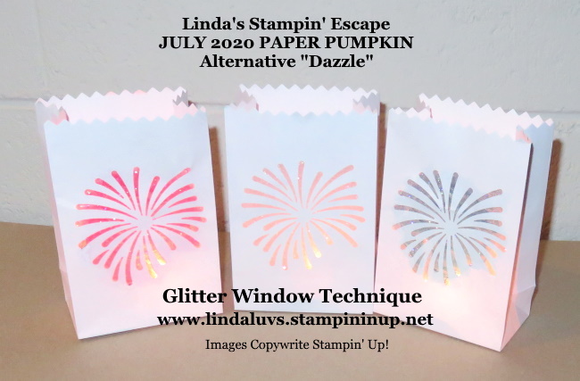 I’m making Sparkling Luminaries …. perfect to decorate your tables or even to line the driveway. These little cuties were fun to make … If you do not have the Paper Pumpkin kit, you can use lunch bags or small white bags from the $ Store and use a punch or die to create a design.