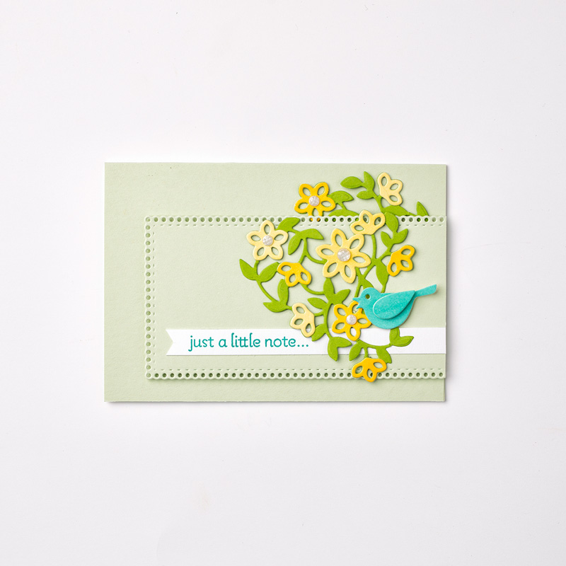 The next card showcases the dies and how versatile they are … and that little bird, how sweet is it to have on your card. It really draws the eye to your greeting.