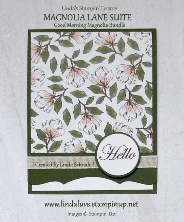 Hope you enjoyed another card from our Magnolia Lane Suite, I have another announcement coming soon!! Watch for my “Cat’s Away” promotion… this is through “ME” Only… and it’s my way of thanking my customers for helping me earn the Greece trip!