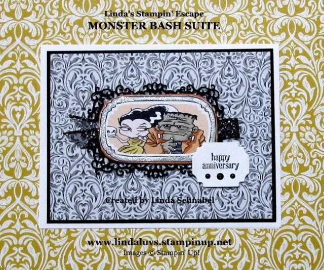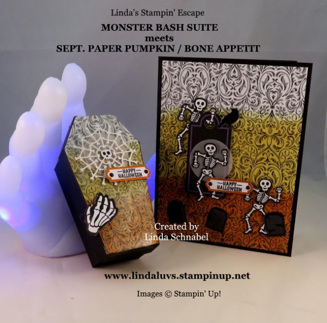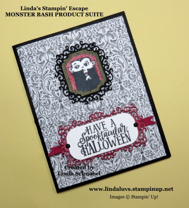 What was your favorite? I know … there are too many to name but I will share one of my fav’s. Oh you knew it would be one of the Halloween sets. Actually .. it’s an entire suite! MONSTER BASH … I just love it!! There are so many fun projects and cards you can make with this one, and here are a few …
