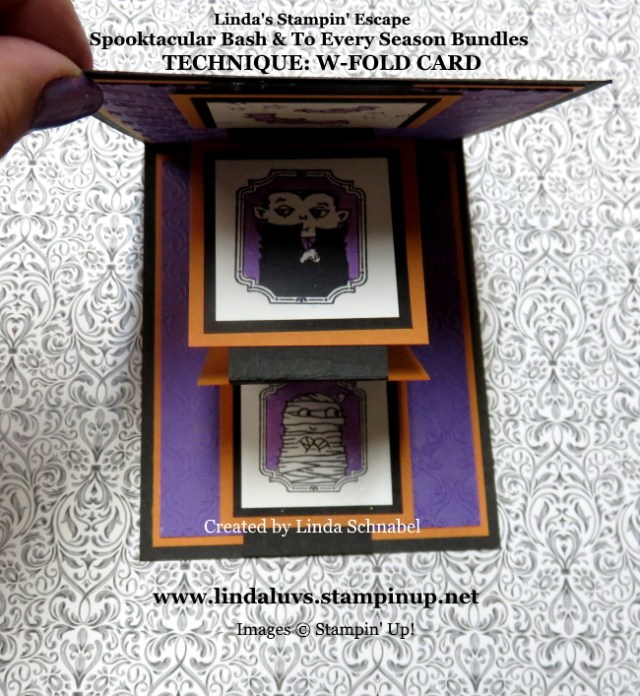 We also did a couple “W-Fold Technique” cards in my stamp clubs. These are so cool and a fun way to display all of the cute images from this bundle …