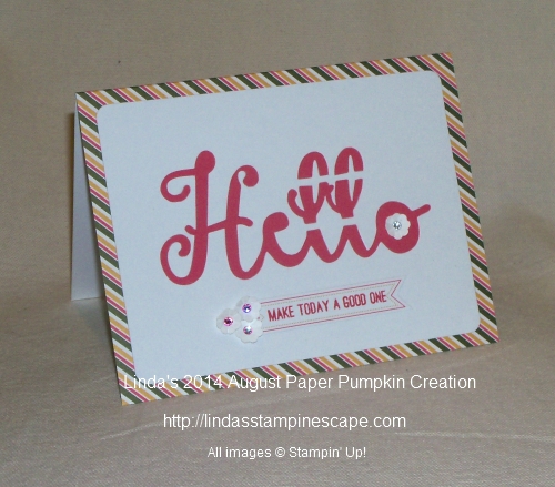 Today’s Simply Sunday is a card I created using the 2015 January Paper Pumpkin Kits… one of my all time favorites! It was super simple to put together as all these fabulous components are found in the kit … the refill is still available.