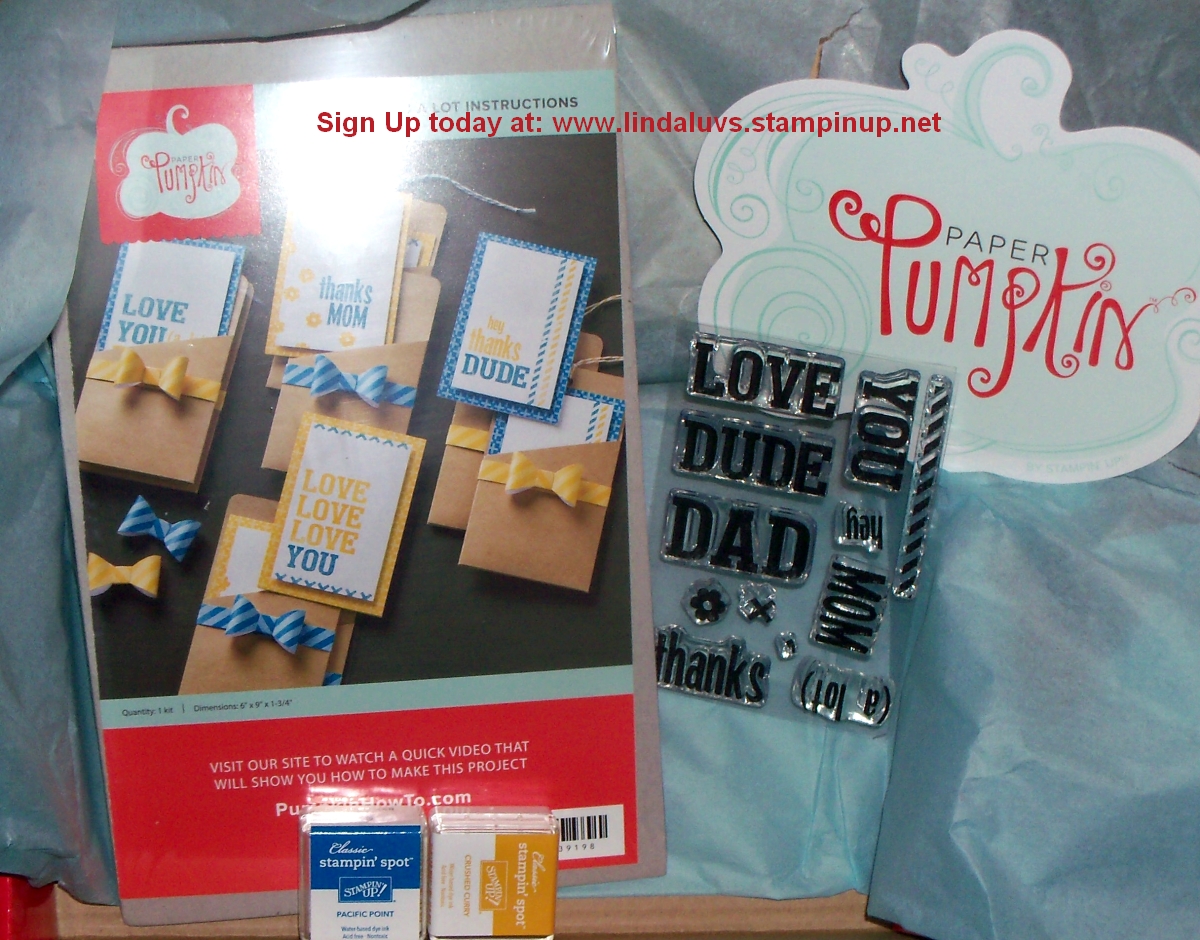 The tag, clip, bakers twine, heart, banners are included in the refill kit. To join in on all the fun … you just need to sign up for Paper Pumpkin. As a subscriber, you receive a pretty package packed with fun every month. You can put it on hold while your away, or just subscribe for a determined length of time.