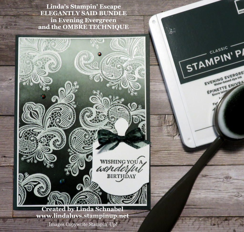 I used the Elegantly Said bundle for my greeting as I did on one of the other cards, and I dyed the edges of the Glitter Organdy Ribbon to coordinate and add a hint of color to the tag.