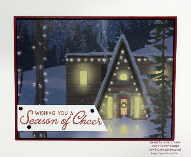 Let’s begin with our simple box that we made using the One Horse Open Sleigh designer paper. Did you catch the TIP on using two sheets of designer paper with one die cut so the paper aligns when putting it together? Don’t you also love that you can stamp your greeting directly onto your designer paper ~ you may want to do it before you assemble because it would be much easier …lol. More tips in the first demo than I had planned / Oh my!! LOL