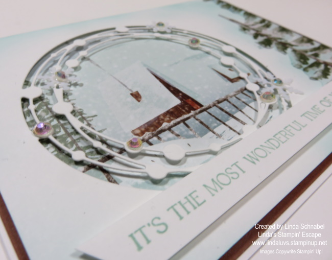Let’s begin with our simple box that we made using the One Horse Open Sleigh designer paper. Did you catch the TIP on using two sheets of designer paper with one die cut so the paper aligns when putting it together? Don’t you also love that you can stamp your greeting directly onto your designer paper ~ you may want to do it before you assemble because it would be much easier …lol. More tips in the first demo than I had planned / Oh my!! LOL