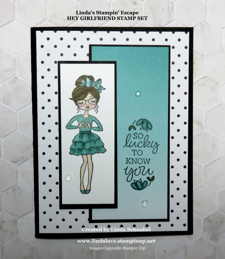 Today I’d like to share two cards with you from the “Hey Girlfriend” stamp set which will be retiring at the end of this month! This set is so fun and versatile you are going to fall in love with it.