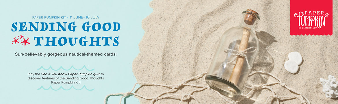 Plus, we’ve got a fun game for you to play: the Sea if You Know Paper Pumpkin quiz! This is a great chance to learn more about Paper Pumpkin and this month’s nautical kit. All active Paper Pumpkin Subscribers who play will be entered in to win a 1-month prepaid Paper Pumpkin subscription code. Subscribe to the Sending Good Thoughts Paper Pumpkin Kit to be eligible to win!