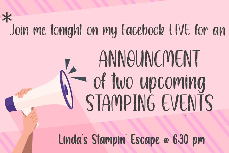 I would also like to invite you to join me for my Facebook LIVE tonight at 6:30 pm CT for a fun Halloween card and a SPECIAL ANNOUNCEMENT for two upcoming Stamping Events!! You won’t want to miss the fun card and my news!