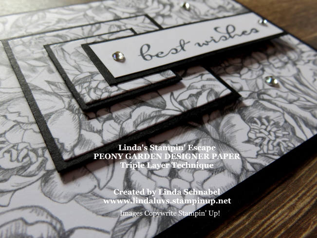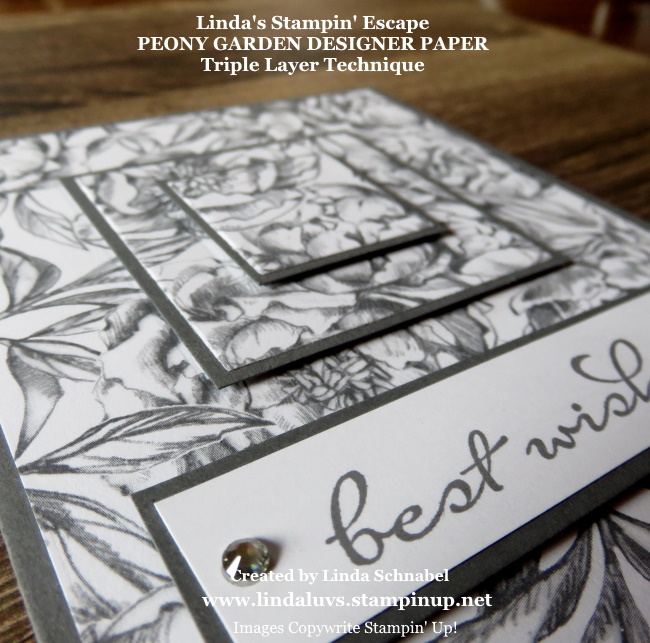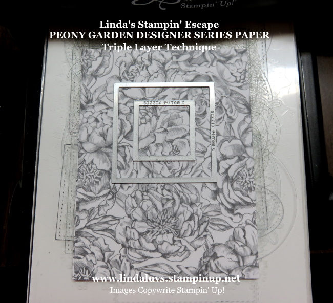 I’ve got two cards to share with you today using the Triple Layer Technique … it is usually done with stamped images but I like using it with designer paper. I’m using the Peony Garden, same as I did on my Simply Sunday cards (View them Here).