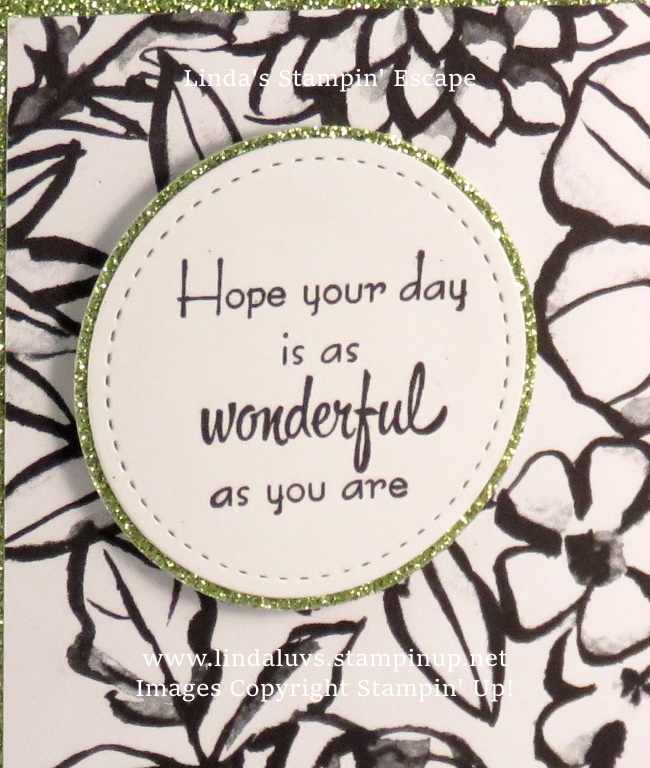 My Stampin’ Blends colors are; Daffodil Delight, Old Olive and Rich Razzleberry with a touch of the Light Pool Party! Plus, I’ve added the Wink of Stella onto a couple small flowers to maintain the white but add some sparkle.