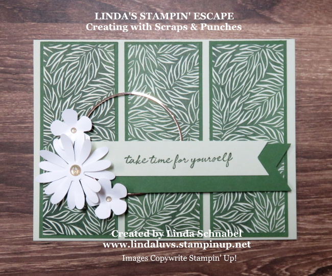 Since we’ve been working with Designer Paper pieces/scraps, banners and simple layouts lately, I have a lovely card created with the Forever Greenery Designer Paper. I am thrilled to share today’s card with you … it turned out so pretty!