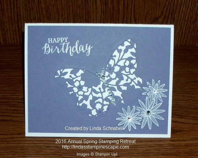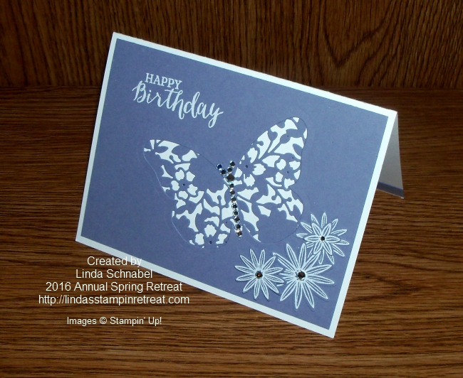 Yes, she hand cut both in designer paper and the section of the front of her card, but as our attendee’s learned at our Spring Stamping Retreat … it really doesn’t take that long and it’s pretty easy to follow that line.