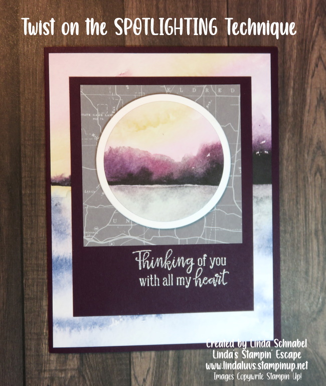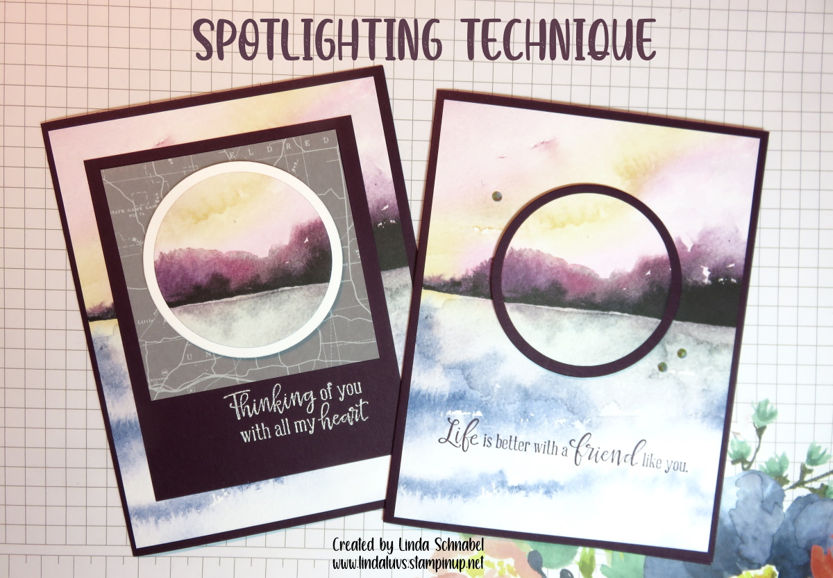 Today I’m going to share a twist to the SPOTLIGHT Technique with the New Horizons Designer paper. You can catch a replay of last nights Facebook LIVE where I showed “how” I cut and then let my guests choose which one they wanted to see put together. The great thing is … today you will see both cards finished off and ready to send!