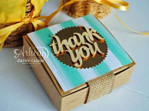 To finish, I added a strip of the Fast Fuse adhesive to the back side and wrapped the card front with Metallic Gold Bakers Twine. H-O-L-Y Cow … that Fast Fuse really holds! The entire card front was popped up … I love layers and dimension.