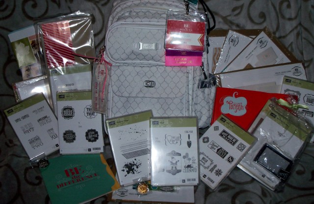 Speaking of gifts, Stampin’ Up! treats us royally while we attend our events. These are all the goodies I brought home with me from the 25th Celebration …