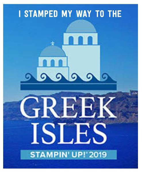 I hate to miss any of the Stampin’ Up! events but no way would I pass up a major milestone! I have a few of my own that I will be celebrating … Lifetime sales of $500,000, Personal Sales, Recruiting – Level 1, Leadership – Level 1 and yes, the Incentive Trip!! All expenses paid trip for 2 … Cruising the Greek Isles!! I thank YOU!!