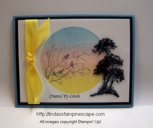 I colored in the indented areas of the tree with my Soft Suede marker to coordinate with the base of my card. Don’t you think it makes the tree more realistic looking? I love White Birch … I think it’s my favorite tree!